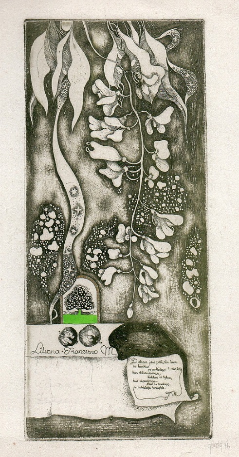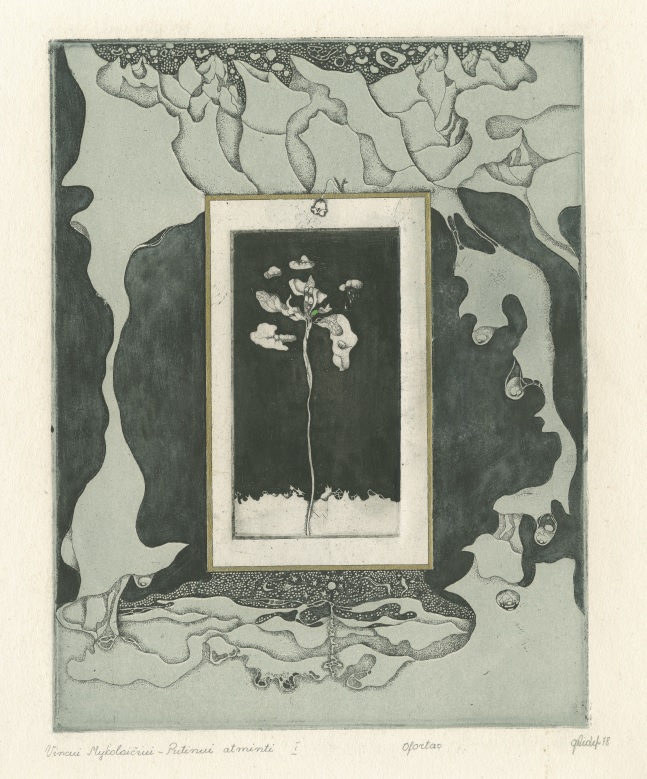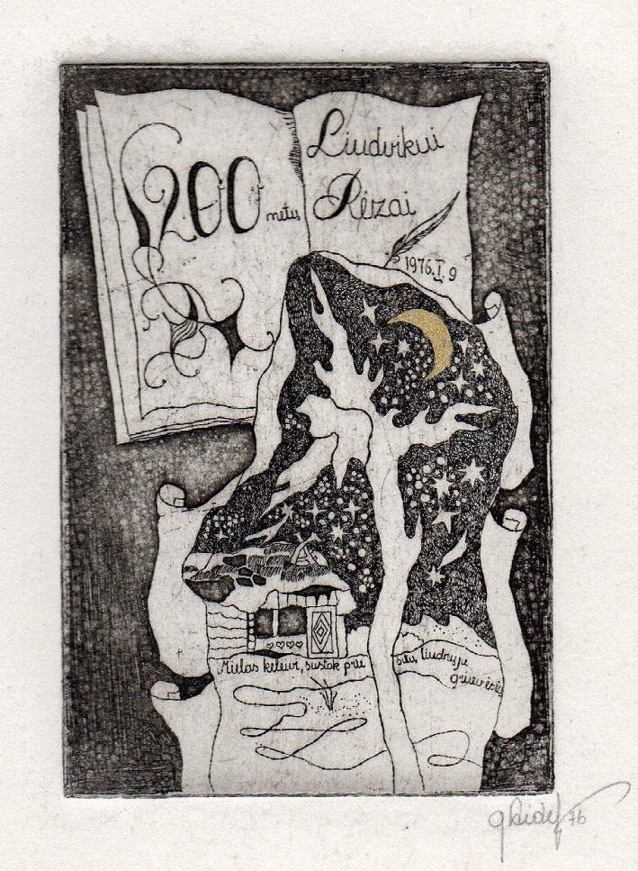 - In memoriam Adomui Mickevičiui. 1976. C3 col. 5×6,5