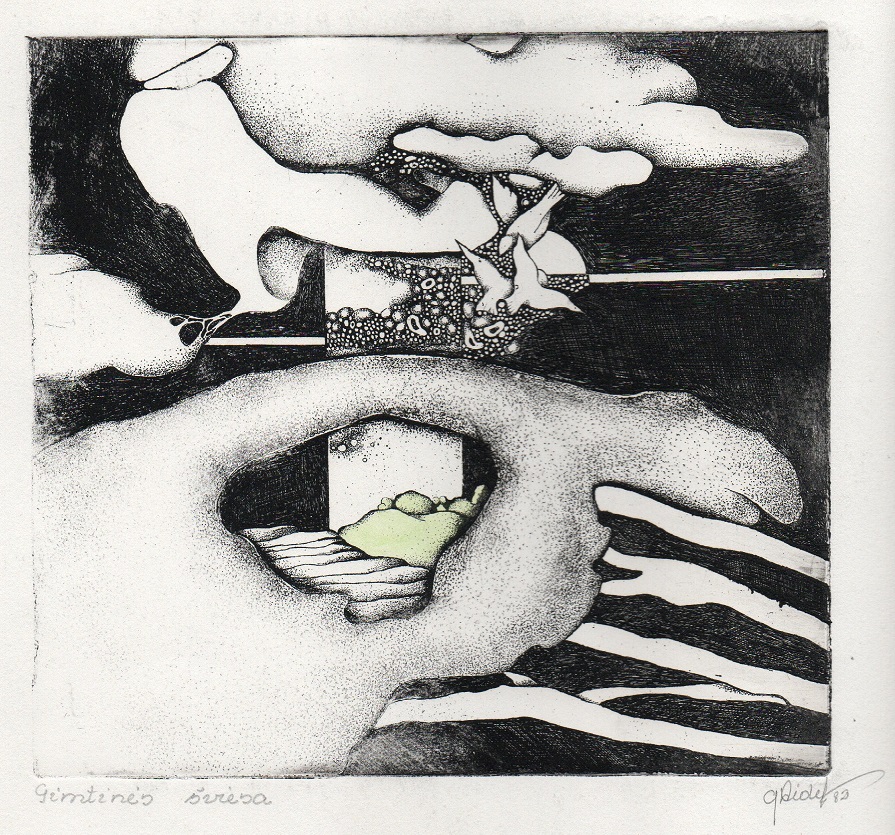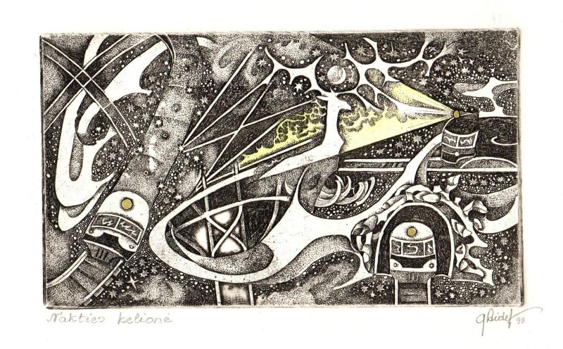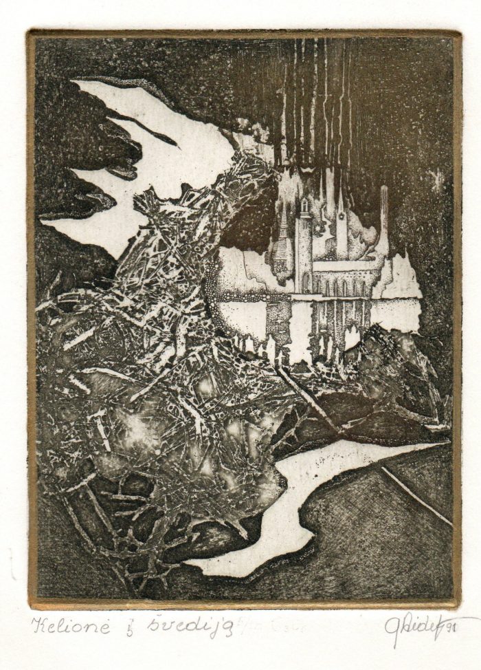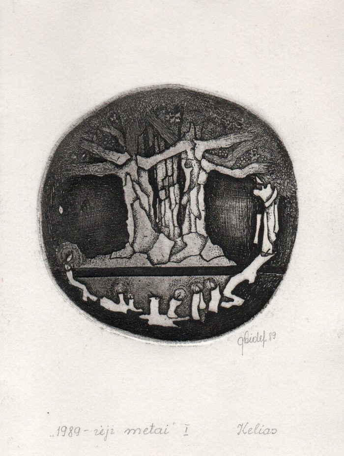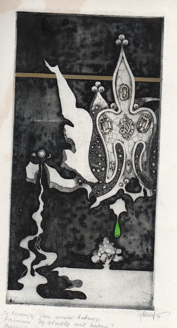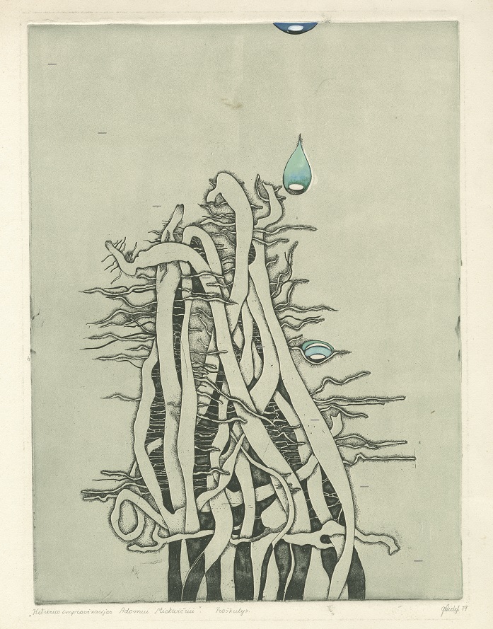 - Iš ciklo „Keturios improvizacijos Adomui Mickevičiui“. Šviesa. 1979. C3 col. 24,5×37