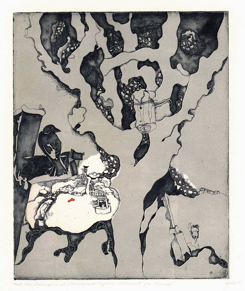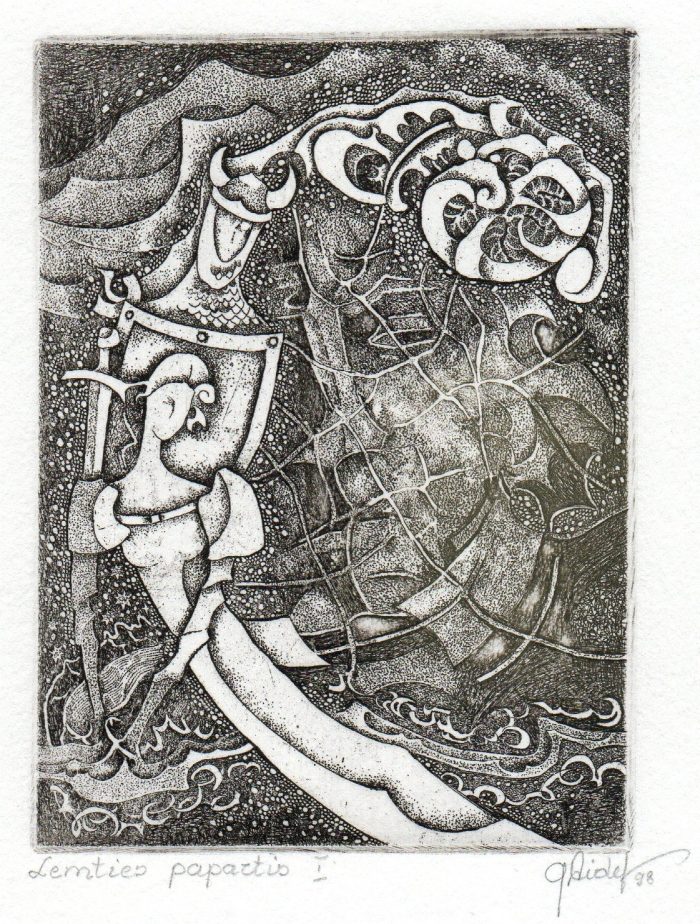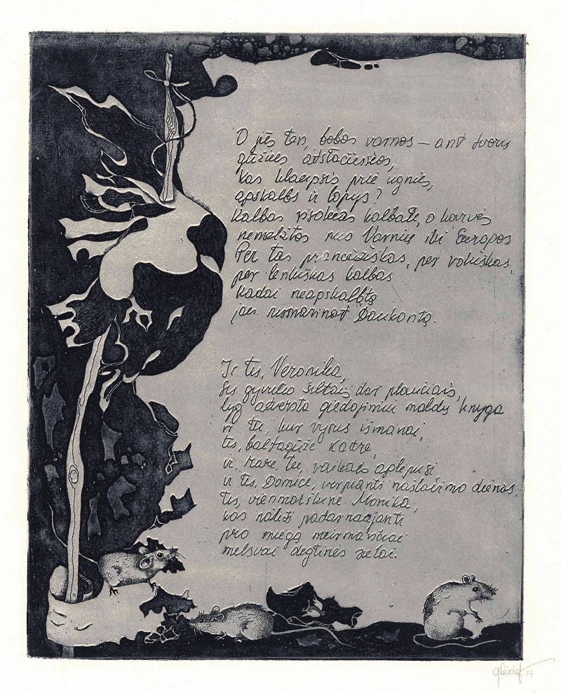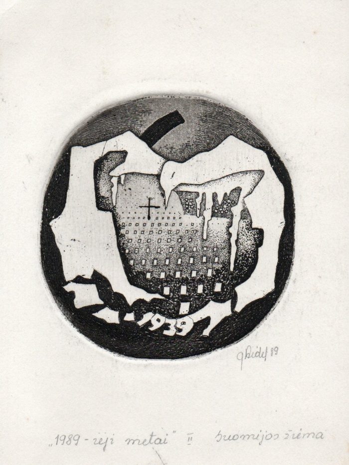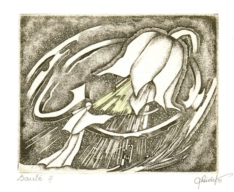 - Iš ciklo „Keturios improvizacijos Adomui Mickevičiui“. Šviesa. 1979. C3 col. 24,5×37
