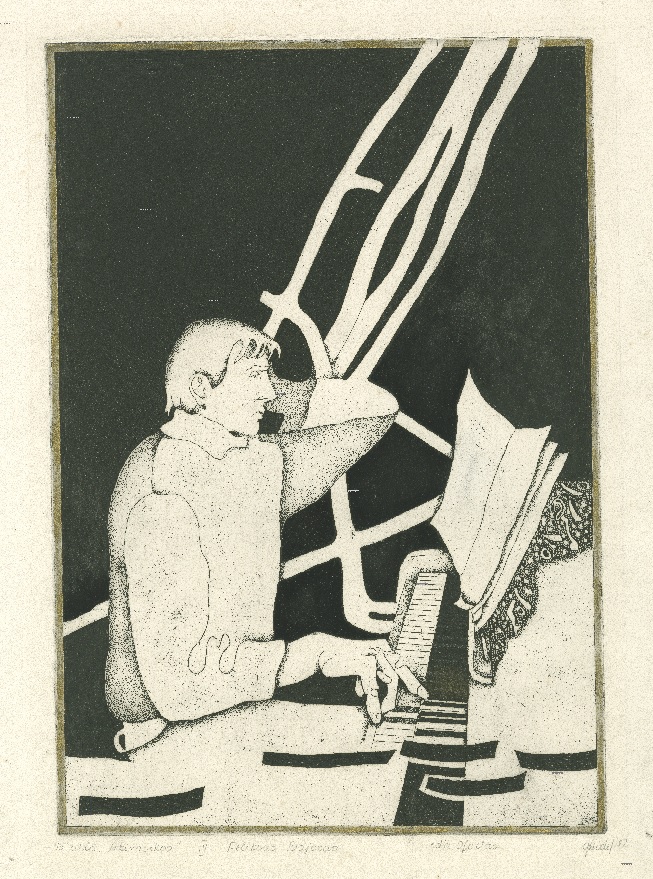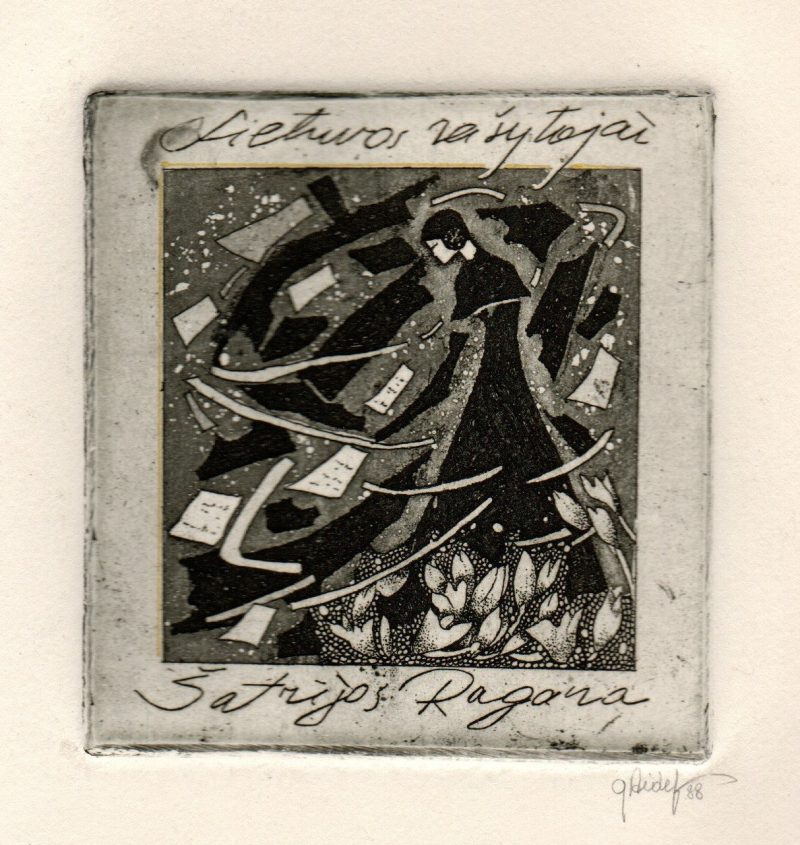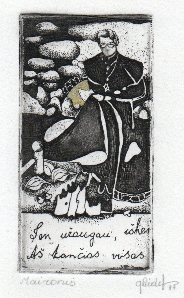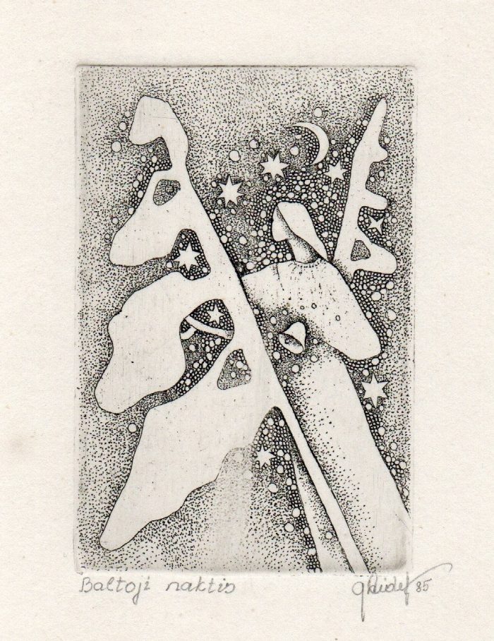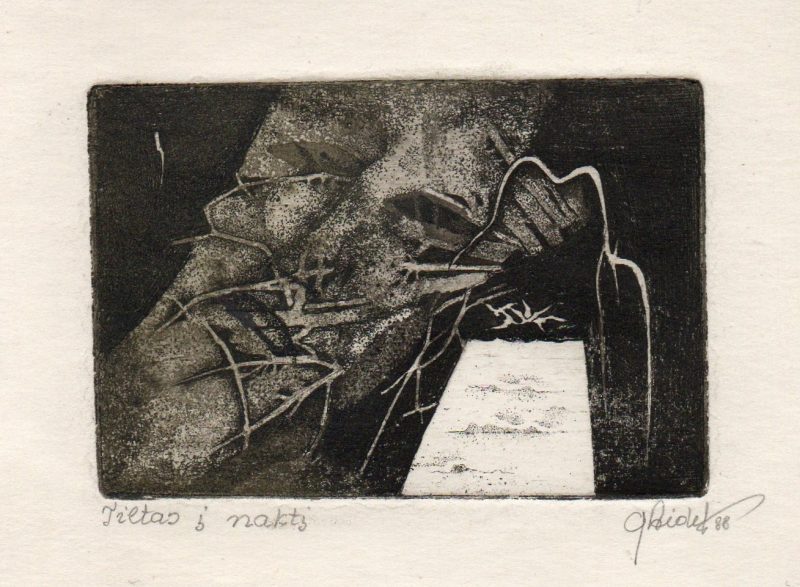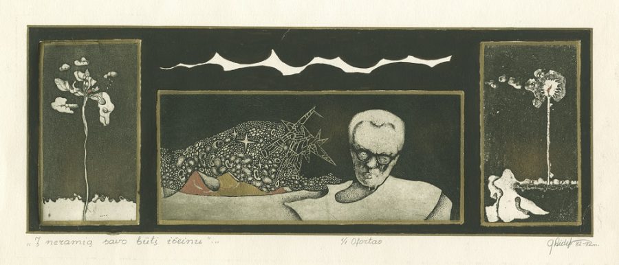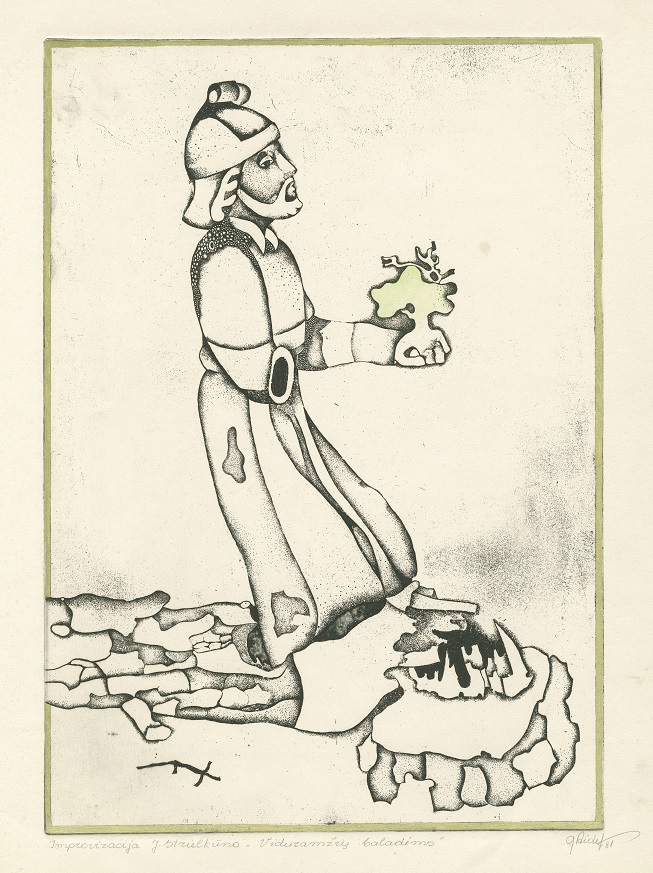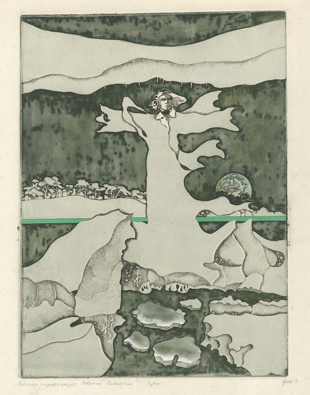 - Iš ciklo „Keturios improvizacijos Adomui Mickevičiui“. Rytas. 1979. C3 col. 25×34