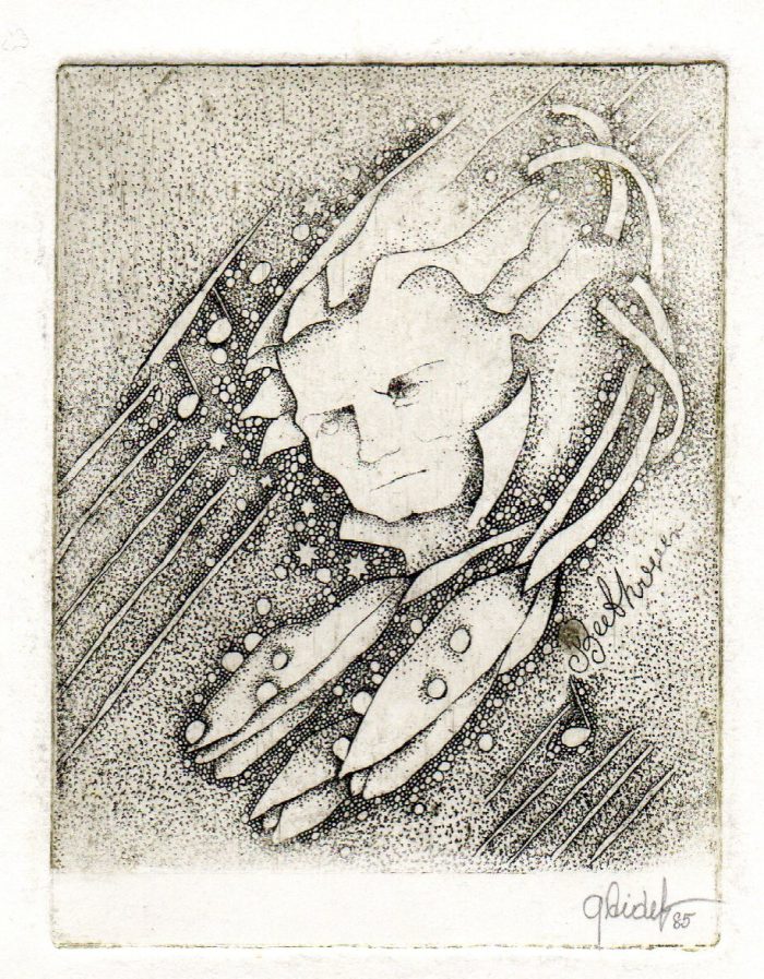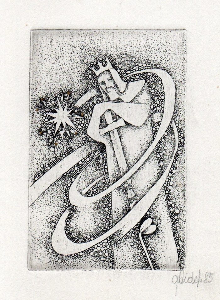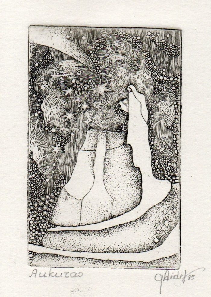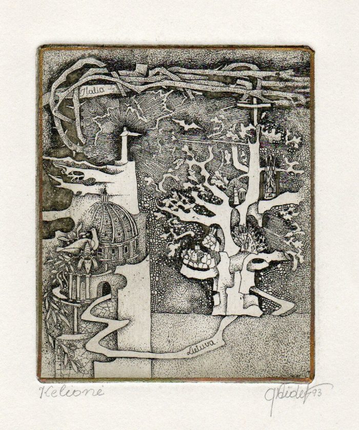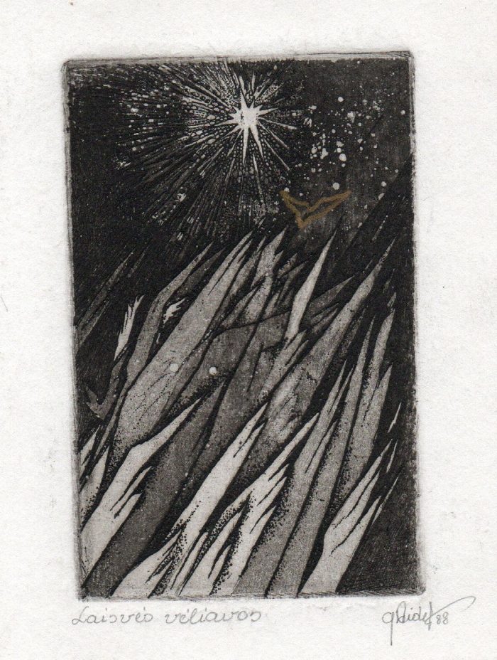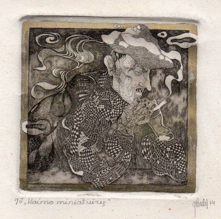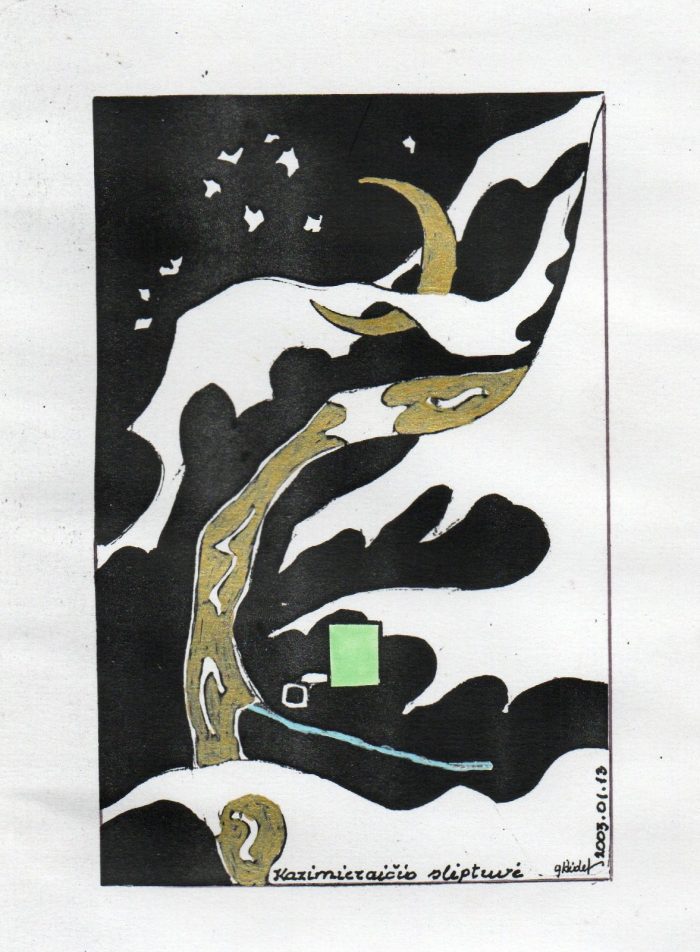 - Iš ciklo „Keturios improvizacijos Adomui Mickevičiui“. Rytas. 1979. C3 col. 25×34