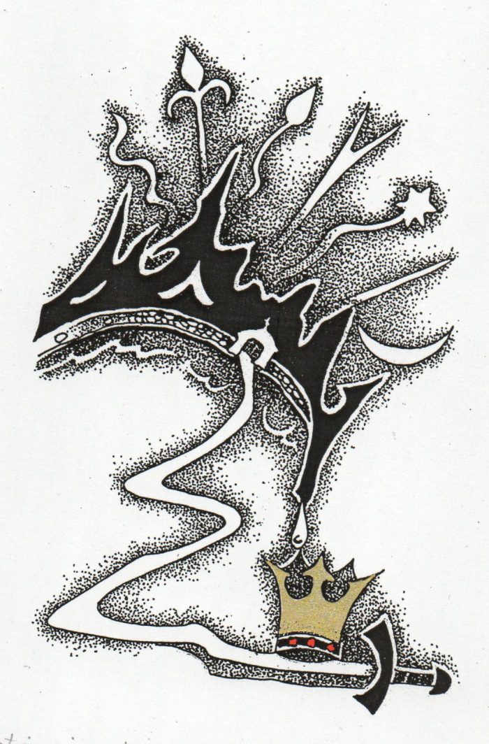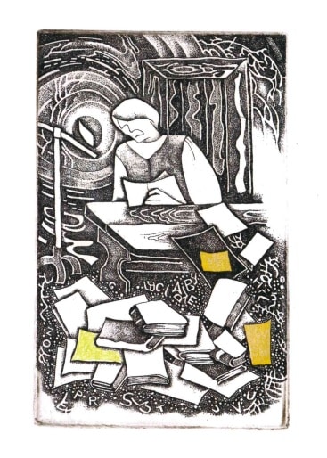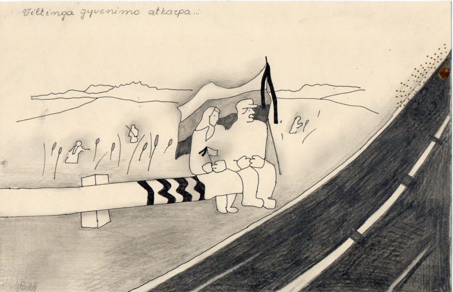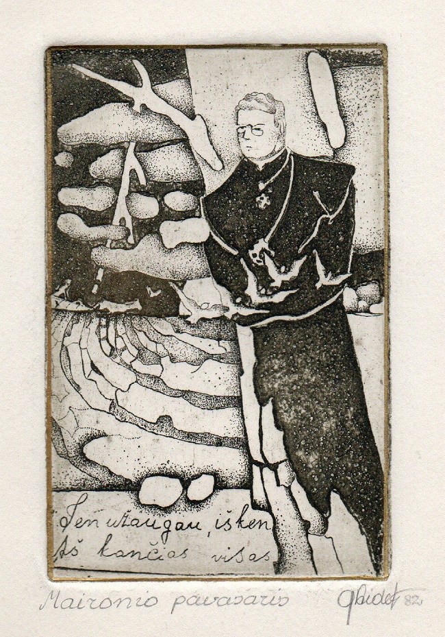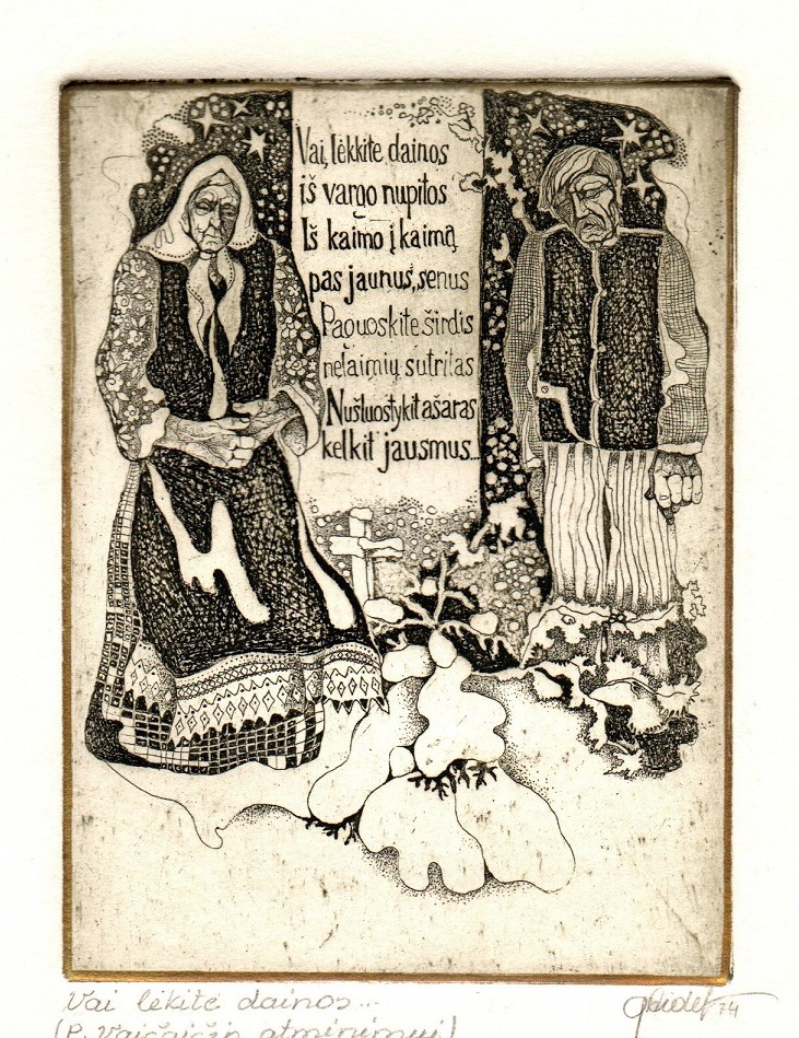 - Iliustracija J. Marcinkevičiaus „Mažvydui“ III. 1976. C3. 23,5×9,5