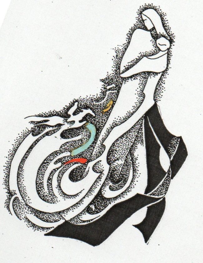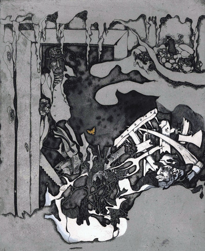 - Iliustracijos Kazio Sajos apsakymui „Sizifo akmuo“. 1976. C3. 8×11,5