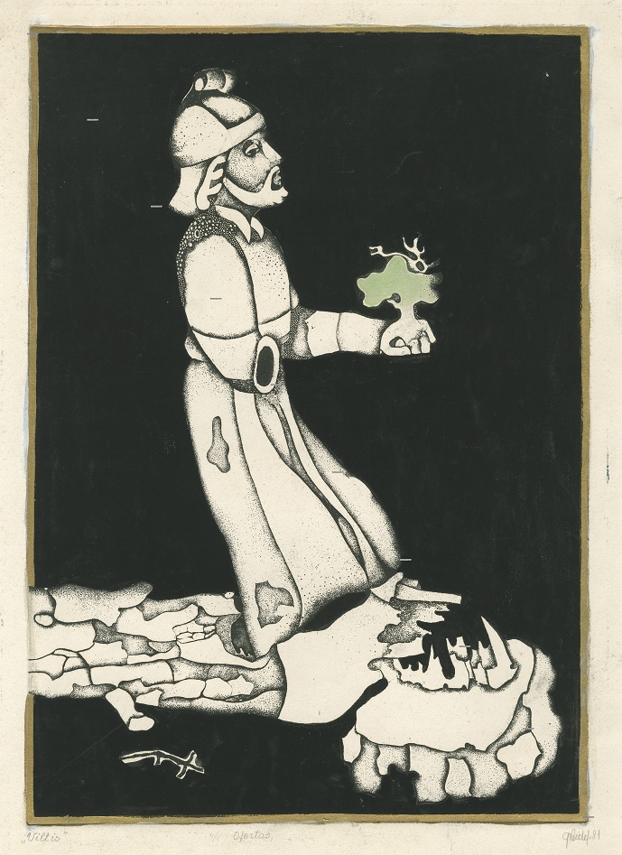 - Iš ciklo „Keturios improvizacijos Adomui Mickevičiui“. Maištas. 1979. C3 col. 25×34
