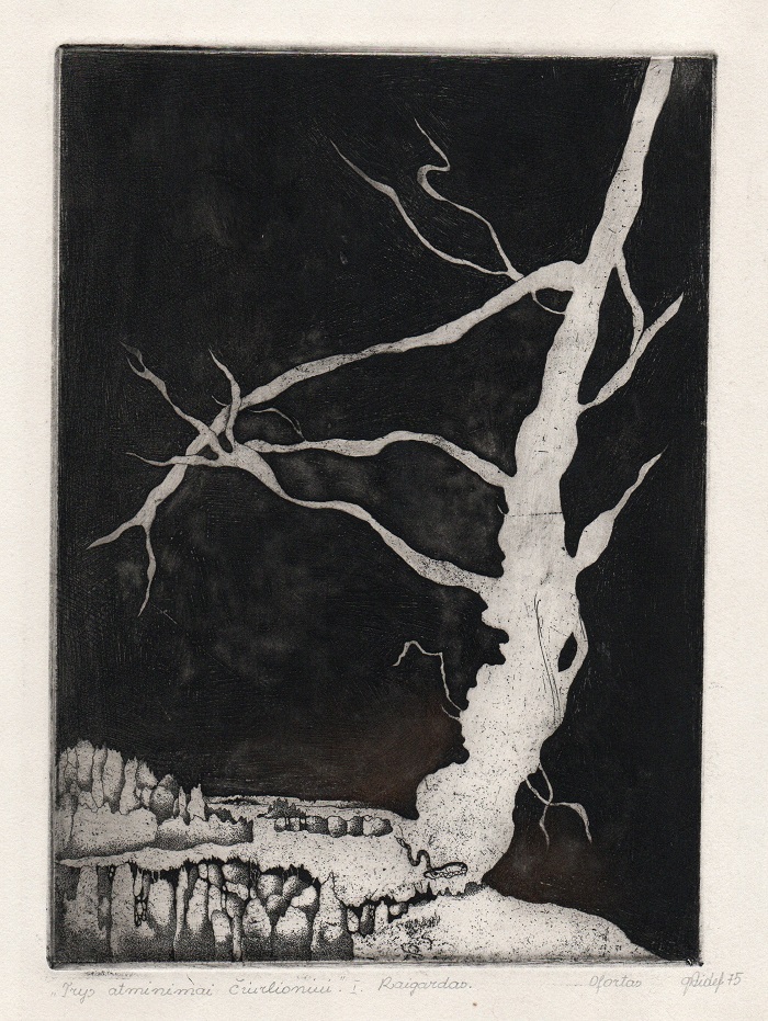 - Trys atminimai Čiurlioniui. I. (Raigardas). 1975. C3. 21×29