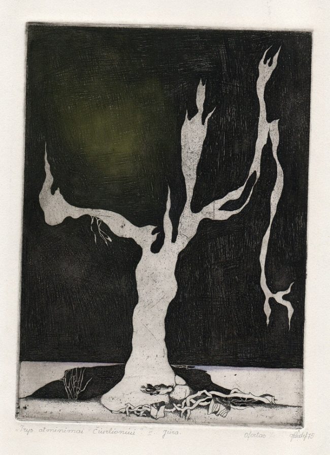 - Trys atminimai Čiurlioniui. III (Jūra). 1975. C3. 21×29