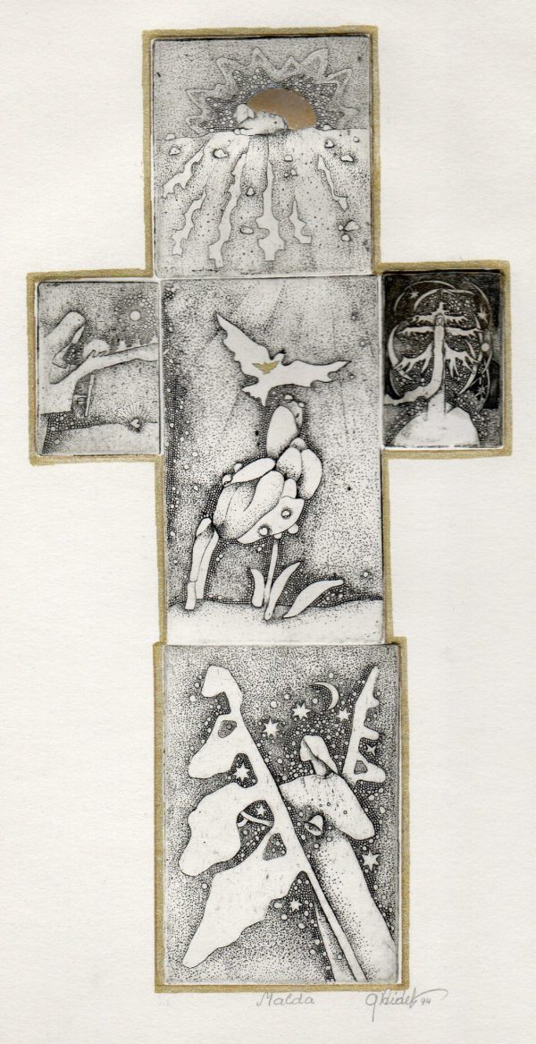 - Ciklas „Mažvydas“. Iliustracijos J.Marcinkevičiaus giesmei. II 1976. C3 col. 23×23,5