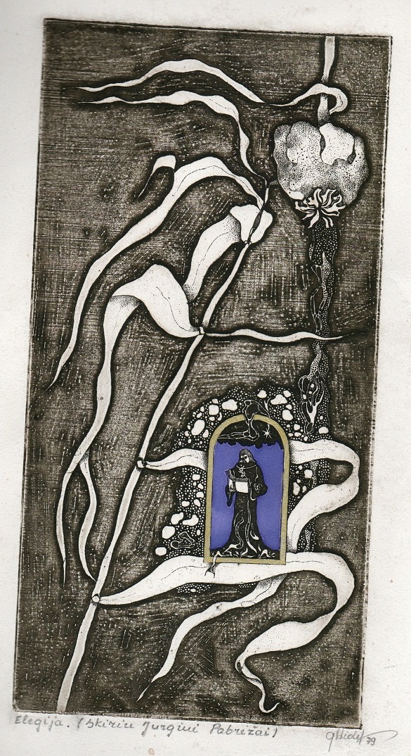 - Elegija. Jurgiui Pabrėžai. 1979. M. 12×23