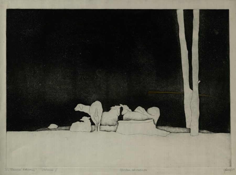 - Iš ciklo „Keturios improvizacijos Adomui Mickevičiui“. Troškulys. 1979. C3 col. 24,5×34