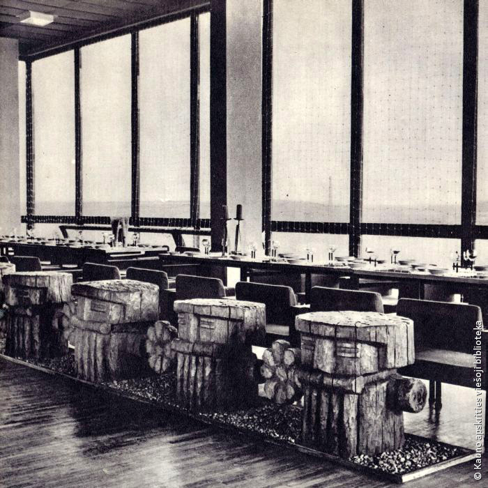 (General view of the interior of the cafe „Three Virgins” with sculptures by L. Strioga) 1971