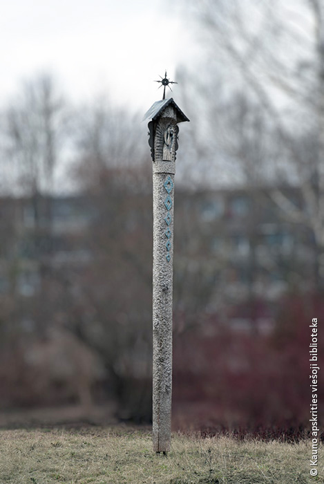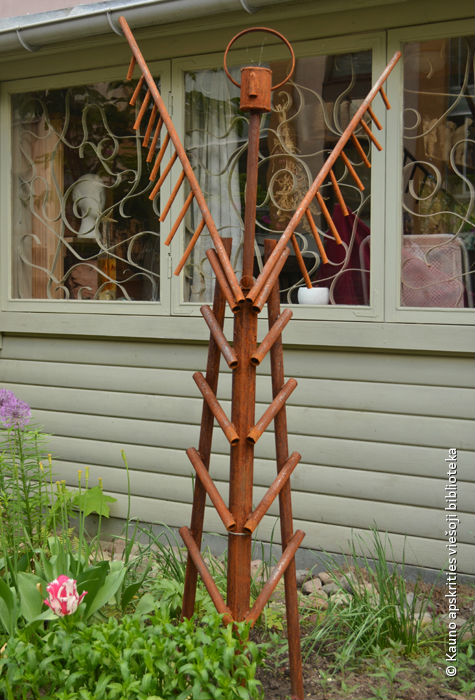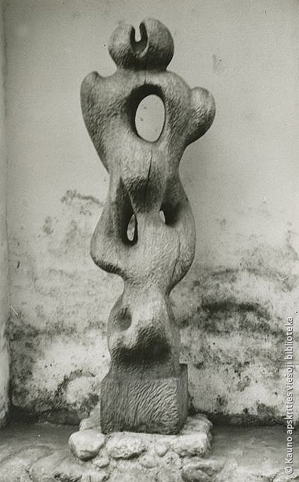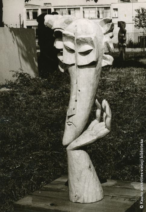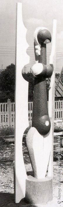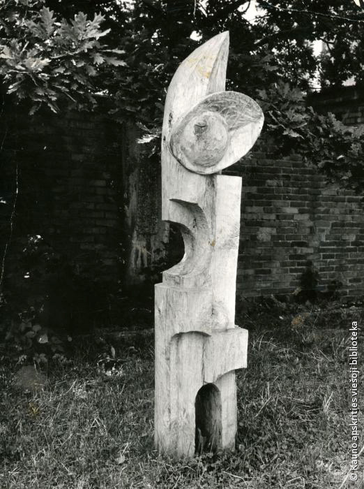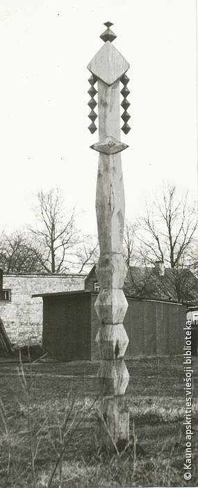 Dekoratyvinis stulpas. 1971. Medis, varis, h 800. Prie kavinės „Trys mergelės”, Kaunas